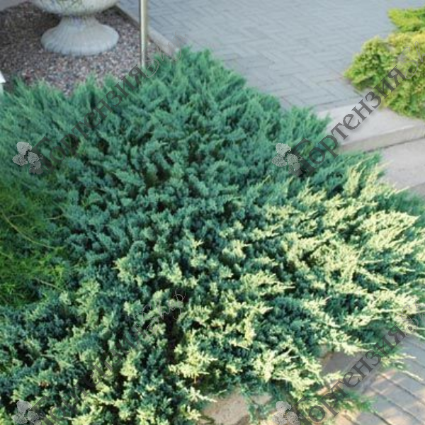 Можжевельник горизонтальный Блю Чип (Juniperus horisontalis Blue Chip) - один из лучших стелющихся сортов можжевельника. Это медленнорастущий, вечнозеленый кустарник во взрослом состоянии достигает 20-30 см при диаметре кроны до 1,2 - 1,5 м. В среднем годовой прирост составляет до 10 см. Красивый кустарник из породы карликовых, способен украсить собой практически любой ландшафтный интерьер. Мелкая хвоя серебристо - голубого цвета осенью и зимой приобретает фиолетовый оттенок. Cветолюбив, морозостоек. Кустарник популярен ещё и тем, что не смотря на свою привлекательность как по форме, так и по цвету, является мощным генератором чистого воздуха.