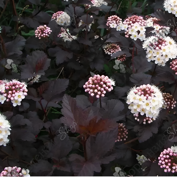 Пузыреплодник калинолистный Диабло (Physocarpus opulifolius Diablo) – кустарник высотой и шириной 3 метра, с раскидистой густой кроной. Листья резные, гофрированные, пурпурного цвета, иногда зелёные с пурпурным оттенком. Соцветия округлые, бело-розовые, сформированы из маленьких венчиков. Плоды – вздутые листовки. Пузыреплодник Диабло прекрасно смотрится в качестве живой изгороди, в групповых и одиночных посадках. Зимостойкость высокая (-40)°.