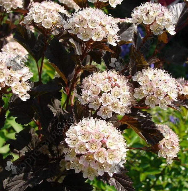 Пузыреплодник Саммер Вайн ( 'Summer Wine') обладает уникальной листвой насыщенного бордового цвета, что создает красивый визуальный эффект. Декоративный быстрорастущий плотным листопадный кустарник, высота которого достигает 1,5 — 2 м. Крона плотная, имеет зонтиковидную форму. Растение свободно ветвится, имеет короткие, слегка поникающие красно-коричневые побеги. Листва 3-лопастная, зубчатая, крупная, винной окраски, в тени становится более зеленой. В период цветения на кустарниках можно увидеть множество щитковидных небольших соцветий размером около 3-5 см с мелкими бело-розовыми цветками. Пушистые соцветия начинают появляться в июне. Кусты цветут около 3 недель. В период плодоношения появляются декоративные вздутые красноватые плоды. Сорт крайне устойчив к неблагоприятным условиям и может выращиваться даже в городе.