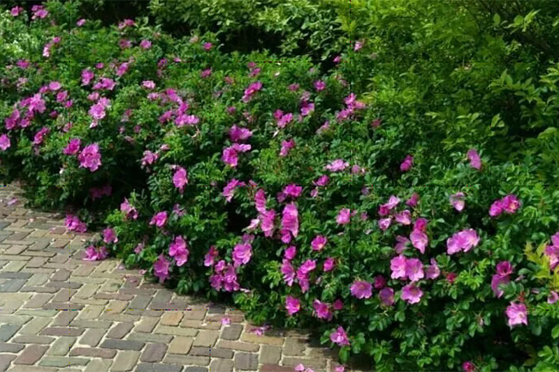 • морщинистая роза подходит для живых изгородей, миксбордеров, садовых арок, заборов и оград;
